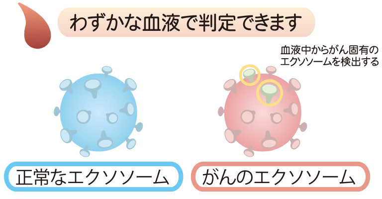 エクソソームは、細胞内の情報を運ぶ小さな袋のようなものです。その中の情報を読み取ることで、細胞の状態を知ることができます。がん細胞はごく初期からがん細胞特有の情報を有しており、その情報を測定し、早い段階で知ることが出来るのがテオリア検査です。