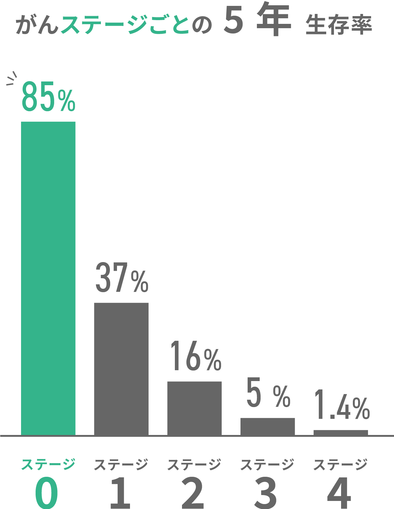※ステージ0で、腫瘍が0.5cm以下のすい臓がん患者の5年生存率は85%以上です。